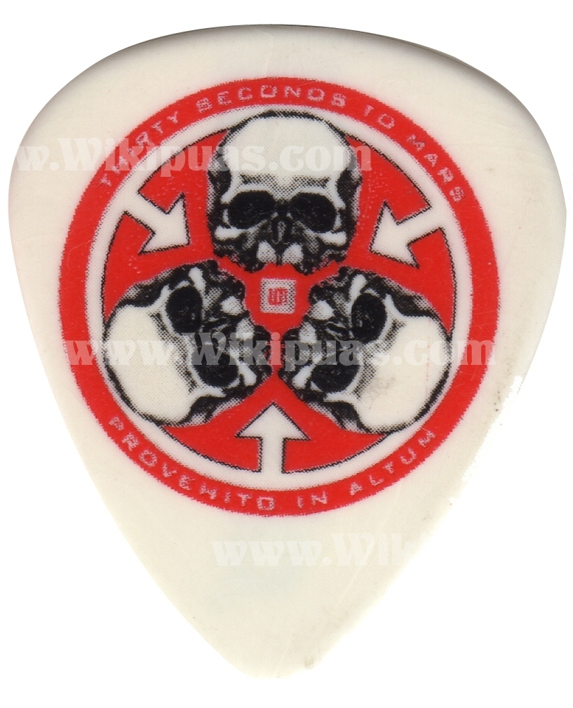 Púa del grupo estadounidense de rock alternativo, 30 Seconds to Mars. Forma parte de un set de seis púas, y aunque fueron utilizadas en los conciertos, también fueron vendidas como merchandising oficial en la web de la banda.