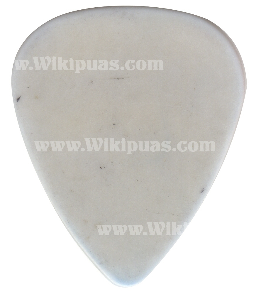 Púa del grupo Ska-P, del año 2003 para la gira «Que corra la voz». Forma parte de un extenso set de púas de idéntico diseño, pero en colores diferentes.